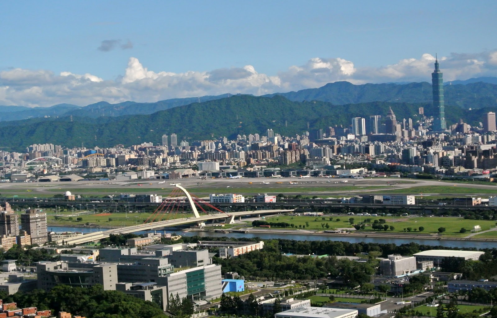 站在觀景台把拔正在介紹臺北盆地